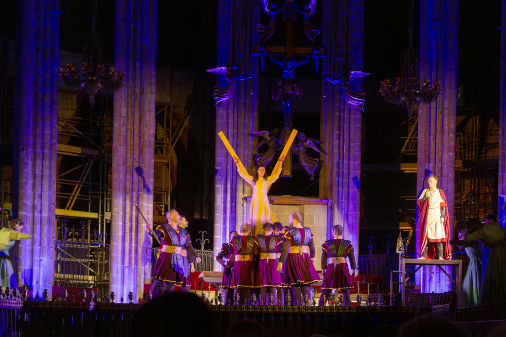 Es tracta d’un espectacle apassionant de dansa i música que rememora la història de la jove, filla de Sarrià, que en el segle III dC, en defensa de la seva fe, es va enfrontar al pretor romà Dacià, el qual va manar que fos martiritzada i condemnada a morir a la creu per la seva condició de cristiana. Sobre la cripta de la catedral de Barcelona, a l’empara del sepulcre on reposen les seves relíquies, s’escenifica la vida de santa Eulàlia, patrona de Barcelona i de la catedral.