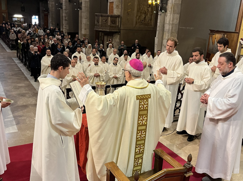 El dimarts s’ha celebrat la Missa del Crisma a la catedral de Terrassa. Han celebrat 75 preveres i 12 diaques. El poble ha omplert la missa. El bisbe Salvador en la seva homilia ha convidat a viure la fraternitat sacerdotal, participant en les trobades diocesanes, superant els protagonismes personals, treballant tots junts, preveres, diaques, religiosos i laics en la gran missió evangelitzadora de l’Església.