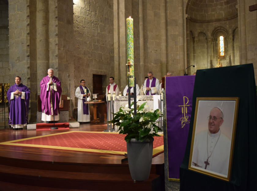 La catedral de Santa Maria de La Seu d’Urgell ha acollit el matí del 29 d’abril la missa funeral diocesana en memòria del papa Francesc, i en pregària pel repòs etern. Ha estat presidida per l’arquebisbe d’Urgell, Mons. Joan-Enric Vives, acompanyat del bisbe coadjutor, Mons. Josep-Lluís Serrano, amb gran presència de sacerdots de la diòcesi.