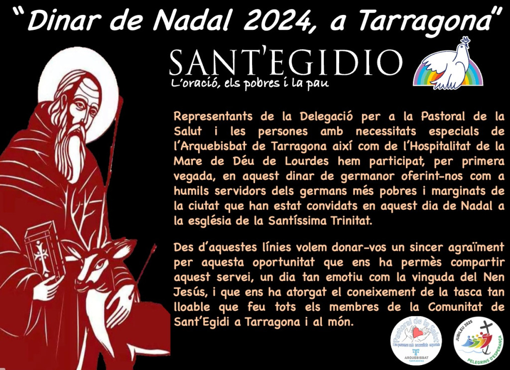 Sant Francesc deia que el Nadal era la “festa de les festes” i així s’ha celebrat a la Comunitat de Sant’Egidio de Tarragona. En aquests temps en què les emoticones són els mitjans més comuns per expressar les nostres emocions nadalenques, impressiona veure com més de cent vint persones amigues comparteixen els seus sentiments: amistat, somriures, abraçades, una taula festiva, una gran harmonia i regals personalitzats.