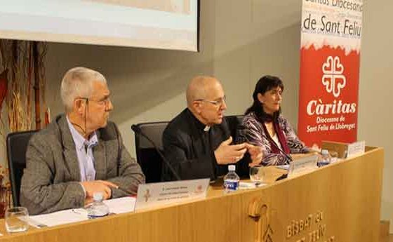 S’acaba de presentar oficialment Càritas Diocesana de Sant Feliu de Llobregat. Ha estat aquest 18 de març, amb la presència del bisbe Agustí Cortés; del director de l’entitat, Joan Torrents, i de la cap d’acció social, Conxa Marquès. Tots tres han coincidit a assenyalar la importància d’aquesta fita en la vida i missió de l’Església que peregrina a Sant Feliu. “És la nostra voluntat -ha dit Mons.Cortés- que l’acció caritativa i social estigui molt implicada en la vida de la diòcesi.” “No es pot ser un cristià autèntic sense tenir en compte els pobres“, ha afirmat també, “l’objectiu de Càritas és manifestar el rostre de més justícia i més caritat dels deixebles de Jesús envers el món que pateix”.