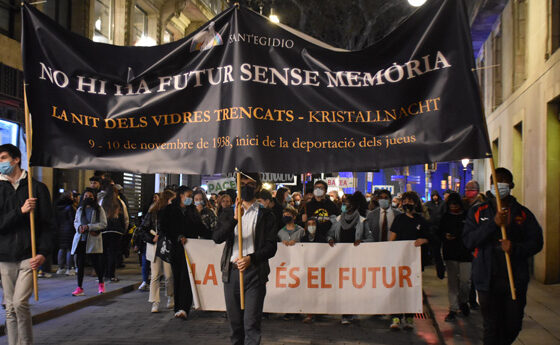 Dissabte 6 de novembre una marxa silenciosa va recórrer els carrers de la Barcelona antiga amb un lema “No hi ha futur sense memòria” per recordar la Nit dels vidres trencats, la Kristallnacht, la nit del 9 al 10 de novembre de 1938 en la qual va començar la persecució dels jueus a Europa. La tradicional Marxa, que la Comunitat de Sant’Egidio organitza cada any juntament amb la comunitat jueva de Barcelona, va començar a la plaça del Pedró i va recórrer els carrers del Raval fins arribar a l’antic barri del Call jueu. A Barcelona els jueus ja havien estat expulsats al 1391, com va recordar en la seva intervenció Vicenç Villatoro. La marxa, encapçalada per nens i nenes de diferents països que representen el futur i que portaven una pancarta amb l’escrit “La pau és el futur” va arribar a la plaça de Sant Just on es va fer un emotiu acte amb testimonis i reflexions que van contribuir a fer un veritable moment de memòria i solidaritat, perquè tothom, sobretot les joves generacions i els immigrants, “nous barcelonins”, no oblidin la deportació esdevinguda durant l’ocupació nazi, una ocasió per prendre distàncies del llenguatge d’odi i de propaganda que tan sovint en la nostra societat fan més dura la convivència civil i obren les portes a actes de violència. A l’acte van prendre la paraula el Rabí de la Comunitat jueva de Barcelona, Meyer Simón Bar; el bisbe auxiliar de Barcelona, Xavier Vilanova; el representant de la Comunitat de Sant’Egidio, Jaume Castro; el periodista i exponent de la lluita pels drets humans Italià, Mario Marazziti; Vicenç Villatoro, periodista i escriptor, actualment director del Memorial Democràtic; i l’escriptora i testimoni Dory Sontheimer. Sontheimer va explicar la història d’alguns dels seus familiars que van viure la persecució nazi, i especialment dels seus avis, que van quedar marcats pel que va succeir durant la Kristallnacht. La violència i la mort desencadenades durant la Kristallnach van fer evident la guerra interna que la societat alemanya vivia contra els jueus i contra els més febles, els diferents. Aquella nit horrible va ser el fruit de l’odi racial, de la pèrdua de llibertat, del menyspreu i la violència que havia anat creixent durant els anys. Les discriminacions i privacions de drets dels jueus, dels gitanos, dels discapacitats físics i psíquics van començar al 1933, van créixer després de la Kristalnach i es va desencadenar amb la barbàrie de l’Holocaust durant la II Guerra Mundial. Jaume Castro, en la seva intervenció va explicar com el “menyspreu al pobre o al diferent és sempre l’inici del mal. Si no s’atura provoca un incendi de conseqüències imprevisibles. Per això ens preocupa el racisme creixent i l’augment de la polarització. El que passa avui als pobres s’estén i demà passarà a la resta de la societat. El no al pobre prepara el no al germà, al veí, a l’estranger. D’aquí neix el nostre servei amb els ancians, el sosteniment dels infants a l’Escola de la Pau, la solidaritat amb els sense sostre, l’acollida al refugiat. Son un servei de reconciliació i de convivència en el si de la ciutat.” Junts, infants i ancians, homes i dones de diferents religions i cultures, van dibuixar pels carrers de Barcelona, que tot just comença a desvetllar-se després de la pandèmia, una imatge de pau i de fraternitat, la visió de construir una ciutat fraterna, solidària, habitada per artesans de pau. Cultivant la pau i la fraternitat es pot obrir el camí a visions compartides i somnis per a la nostra ciutat i per a tota la humanitat, perquè ningú en quedi al marge.
