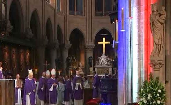 L’arquebisbe de París, André Vingt-Trois, ha presidit aquest diumenge a la tarda, a la catedral de Notre Dame, una celebració de l’Eucaristia en homenatge a les víctimes de l’atemptat que divendres passat va costar la vida almenys a 132 persones a la capital francesa. Les campanes del temple han sonat durant 15 minuts una estona abans de la Missa. En aquell moment, la plaça de Notre Dame era plena de gent que s’ha apropat a consolar i animar els familiars de les víctimes.
