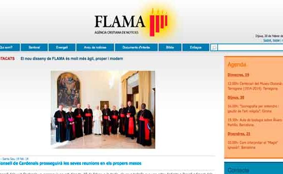 Flama, Agència Cristiana de Notícies, ha estrenat un nou disseny. Les millores permeten la classificació de les notícies per temàtiques específiques, millorar els suports gràfics i oferir informació en format vídeo. Les informacions més destacades també seran presents amb flashos d’última hora.