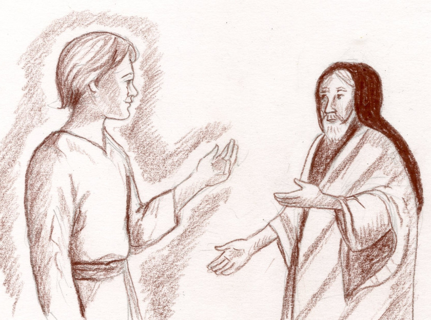 – Zacaries dubta: “Jo ja soc vell i la meva dona també és d’edat avançada”, mentre que Maria es posa a disposició: “Com podrà ser això?”