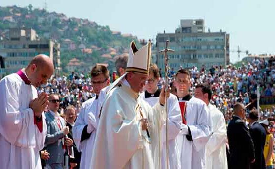 L’acte central de la visita del papa Francesc a Bòsnia-Hercegovina va ser la celebració d’una multitudinària eucaristia a l’Estadi Kosevo de Sarajevo. Davant més de 60.000 ànimes, el Sant Pare va convidar tots els fidels a esdevenir “artesans de la pau“. “La pau és el somni de Déu -va recordar-, és el projecte de Déu per a la humanitat, per a la història, amb tota la creació. I és un projecte que es troba sempre en oposició per part de l’home i per part del maligne.” Un cop més des d’aquesta ciutat -va acabar dient- s’eleva el crit del poble de Déu i de tots els homes i dones de bona voluntat: Mai més la guerra!”