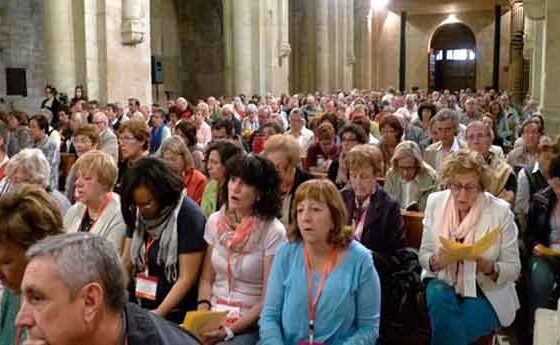 Les quatre ofrenes de lanostra vida de cristians, de la vida dels laics que viuen immersos en el món,sotmesos als atacs de les tempestes d’aquest món, remoguts pels terratrèmolsque somouen tots els fonaments, temptats per la seducció del poder i delsdiners, afalagats per la untuositat de la corrupció; les quatre ofrenes les hemportades a la nau de l’Església, il·luminades tot l’estona per una petitaflama, la flama de la nostra fe que vol transformar tota la nostra vida i lesseves vicissituds en un seguiment radical de l’Evangeli de Jesucrist, capaç defer sortir aquesta petita llum de la nau de l’Església cap al món sencer. Perfer-ho necessitem del Crist: per això tota la vetlla l’hem feta dins la nau dePoblet, llarga i immensa, tenint la nostra mirada fixa envers la Creu quepresideix l’altar, fixa envers el Crist. La mirada fixa en Crist, per poderabraçar tots els germans amb el Parenostre, com vam procurar simbolitzar alfinal de la vetlla. Pare nostre que esteuen el cel…