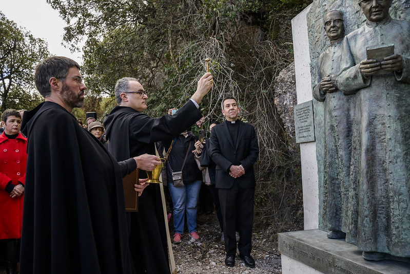 Com va explicar l’abat de Montserrat, P. Manel Gasch, durant l’eucaristia prèvia a la benedicció del relleu, “molts sants han passat per Montserrat, de sant Ignasi a sant Joan Pau II; i és per això que era important poder acollir un relleu per testimoniar el pas de sant Josepmaria i del beat Àlvar, com a pelegrins de la Moreneta i fer-ne exemple de tants seguidors seus que a partir d’avui el veuran i el visitaran”. El mateix abat va recordar l’amistat de sant Josepmaria amb la comunitat de Montserrat, que va començar “en els anys de la Guerra Civil, amb la comunitat de monjos exiliada a Navarra, i que van personalitzar els nostres germans el P. abat Gusi, i molt especialment el P. abat Aureli M. Escarré”.