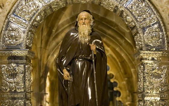 Aquest conegut sant castellà de jove es va voler fer monjo benedictí, però no va ser acceptat. Aleshores es va retirar a fer vida ermitana als boscos de la Rioja. Per aquell indret passaven molts pelegrins que anaven a Sant Jaume de Galícia, i sant Domènec va decidir arranjar tot aquell tram per fer més còmode el pelegrinatge: va millorar la calçada (d’aquí el nom), va construir un pont per creuar el riu Oja i va bastir un hospital per allotjar els caminants, amb església inclosa. L’ermità es va guanyar fama de sant i una vegada mort la seva tomba es va convertir en un centre de devoció. Amb el temps el lloc va esdevenir la població de Santo Domingo de la Calzada.