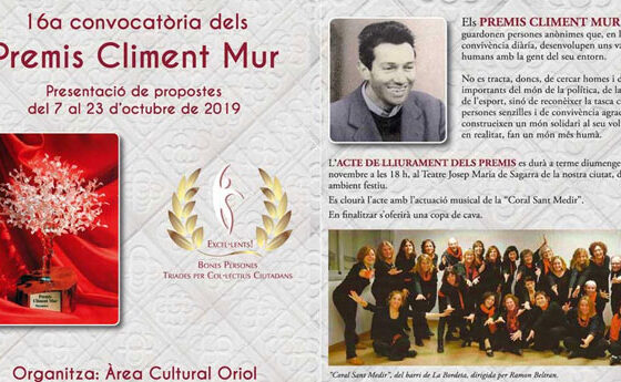 Climent Mur (Santa Coloma de Gramenet, 1927 – Barcelona, 1970), un tècnic sanitari que es va caracteritzar per la tasca humanitària en favor del proïsme, és la persona que inspira els premis que porten el seu nom i que lliura l’Àrea Cultural Oriol cada dos anys des del 1989. Els valors humans (senzillesa, esperit de servei i d’acolliment, solidaritat, do de consell, alegria, bon humor…) que Climent Mur va practicar al llarg de la seva vida en tractar les persones són el barem a l’hora de seleccionar els candidats als premis.