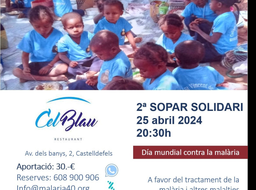 Per recaptar fons per a aquesta emergència, l’ONG Malaria 40, de Castelldefels, organitza un sopar solidari el dijous 25 d’abril —Dia Internacional de la Malària—, a les 20.30, al restaurant CelBlau.