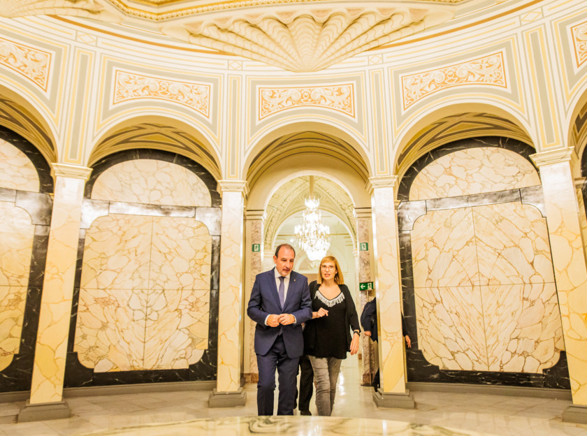 L’entorn: el Saló Sant Jordi del Palau de la Generalitat de Catalunya; la presidència: a càrrec del president Salvador Illa, acompanyat pel president del Parlament…