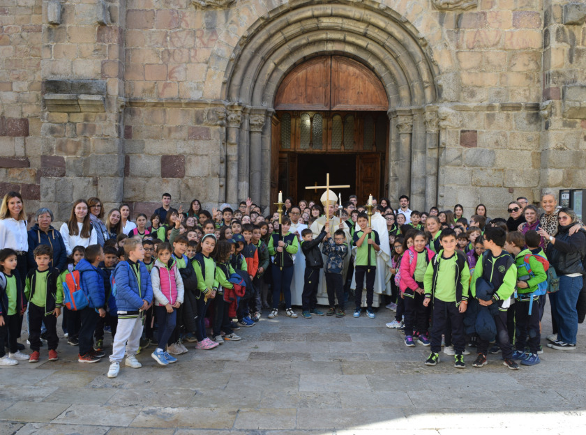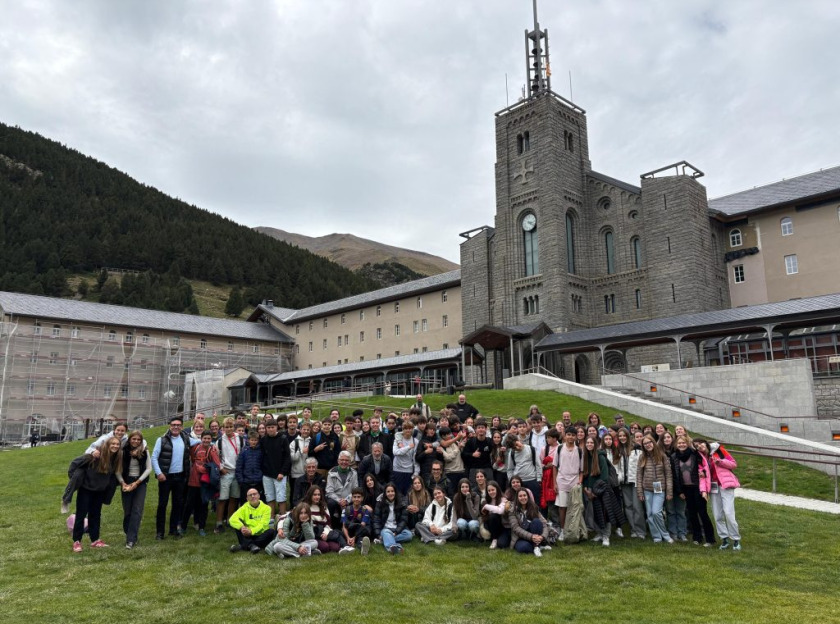 Cent cinquanta-cinc alumnes de primària del Col·legi de la Sagrada Família d’Escaldes-Engordany, acompanyats de quinze mestres, el director del centre, Bernat Vilella, i les germanes Vanessa…