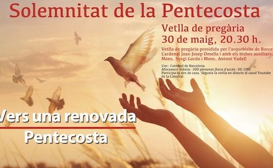 Amb motiu de la festa de la Pentecosta, celebració de la diada de l’Acció Catòlica i de l’Apostolat Seglar, s’ha convocat una vetlla de pregària a la catedral de Barcelona amb el lema Vers una renovada Pentecosta.